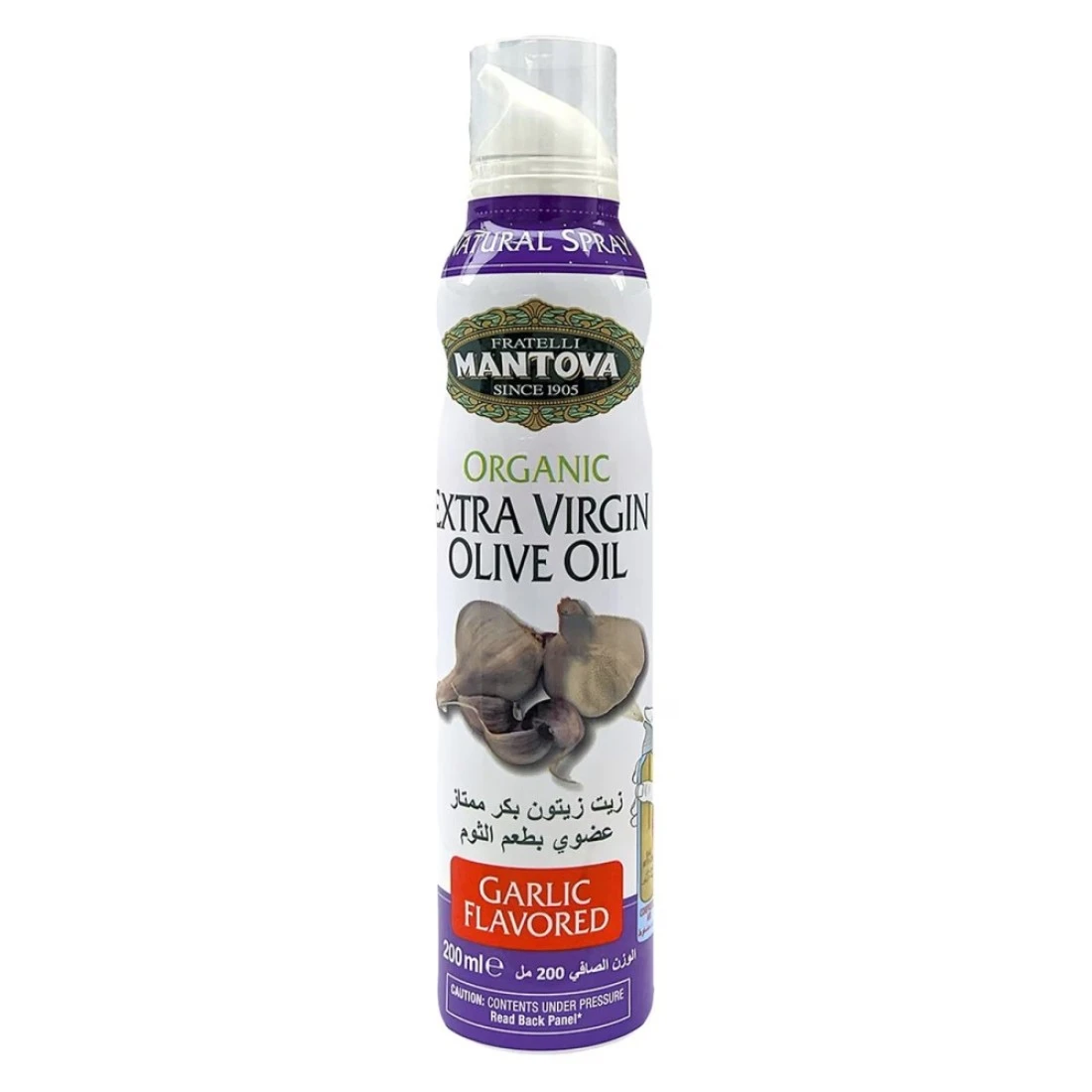 - Mantova Spray Garlic Extra Virgin Olive Oil is an all-natural product that has a great balance of garlic and extra virgin olive oil flavour