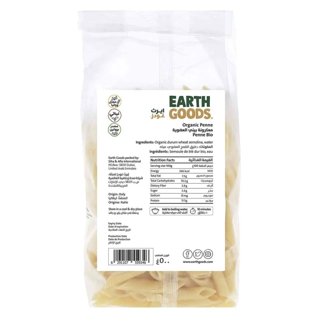 Earth Goods Organic Penne Pasta 500g