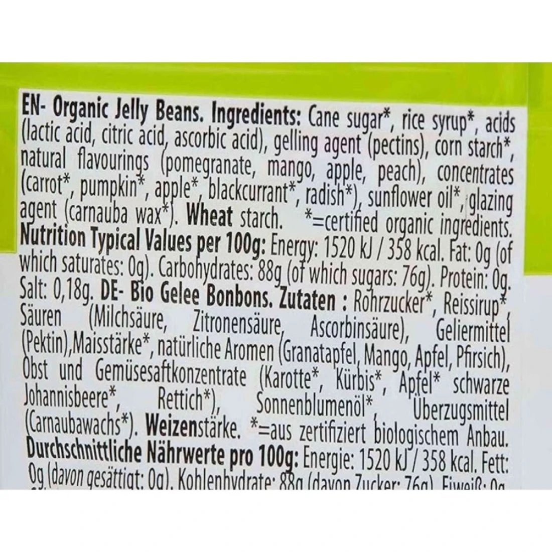 ingredients : Organic Cane Sugar, Organic Rice Syrup, Lactic Acid, Citric Acid, Ascorbic Acid, Pectin, Organic Corn Starch, Natural Flavours, Coloured With Organic Concentrate (Carrot, Pumpkin, Apple, Blackcurrant And Radish), Organic Sunflower Oil, Organic Carnauba Wax