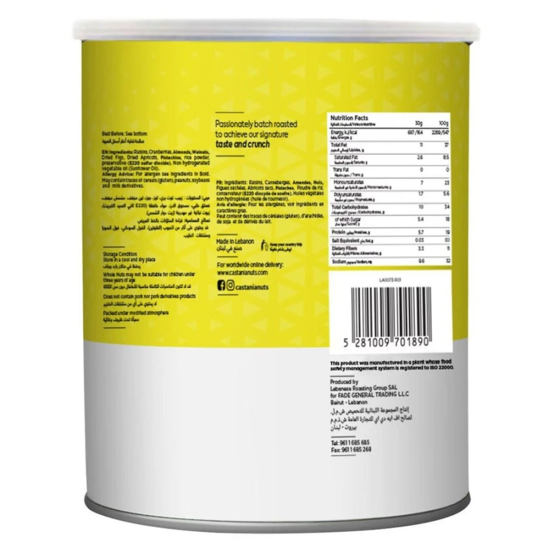 ingredients : Raisins, Cranberries, Almonds, Walnuts, Dried Figs, Dried Apricots, Pistachios, Rice Powder Preservative (E220 Sulfur Dioxide), Non-hydrogenated Vegetable Oil (Sunflower Oil)