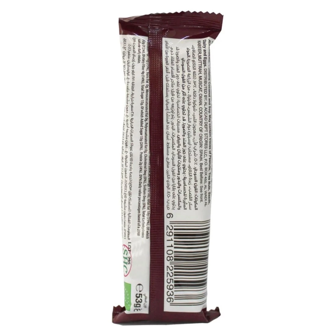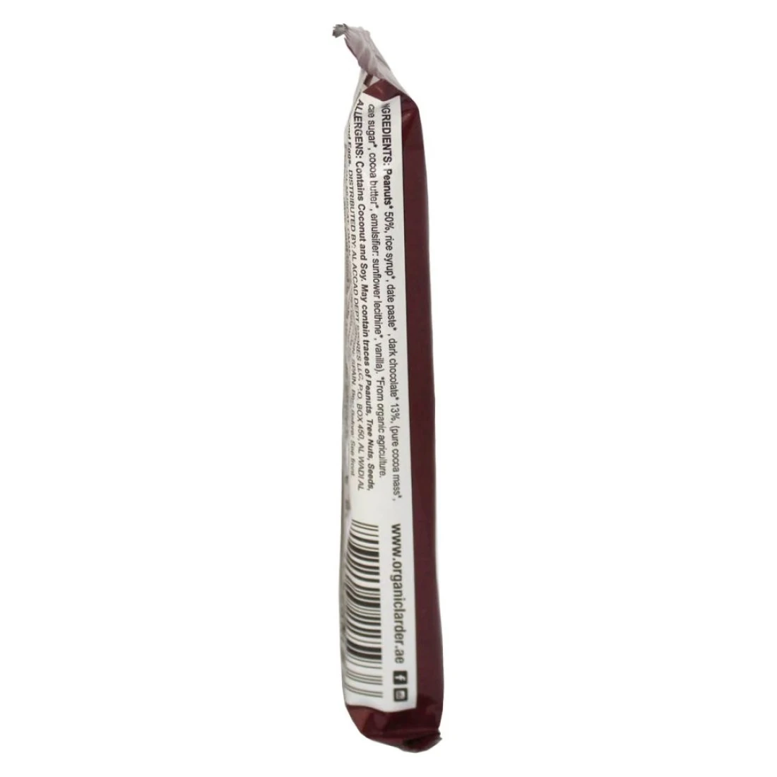 ingredients : Peanut, Rice Syrup, Date Paste, Dark Chocolate (Pure Cocoa Mass), Cane Sugar, Cocoa Butter, Emulsifier: Sunflower Lecithin, Vanilla).