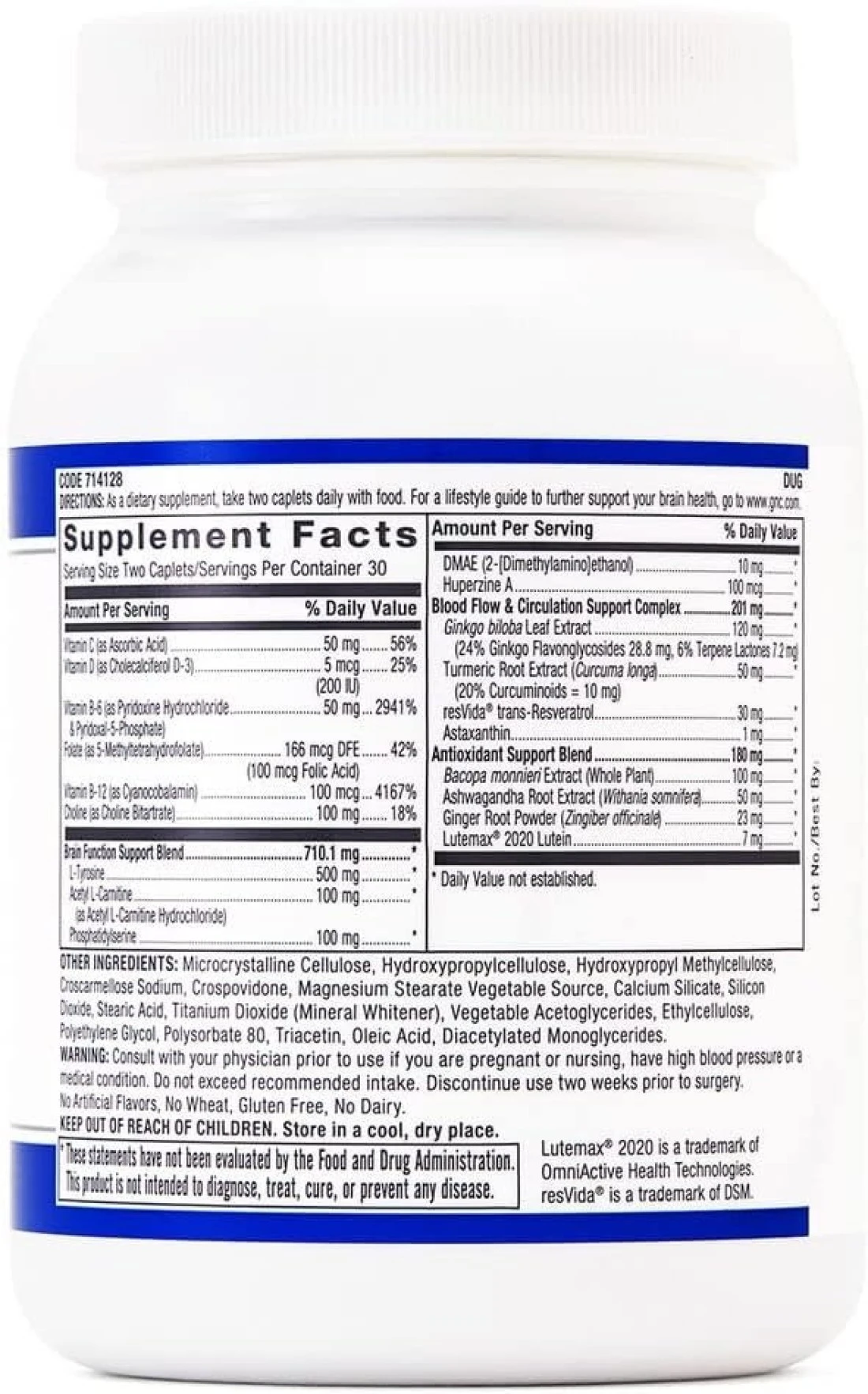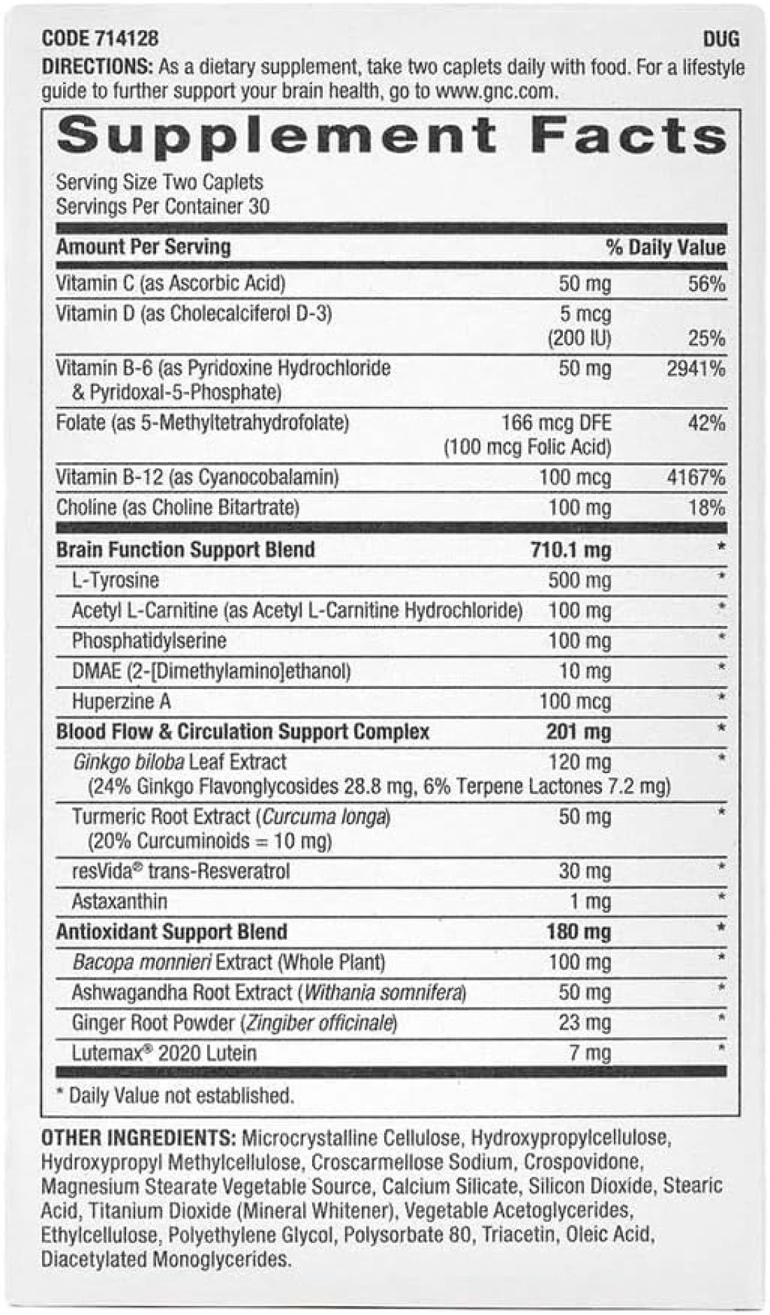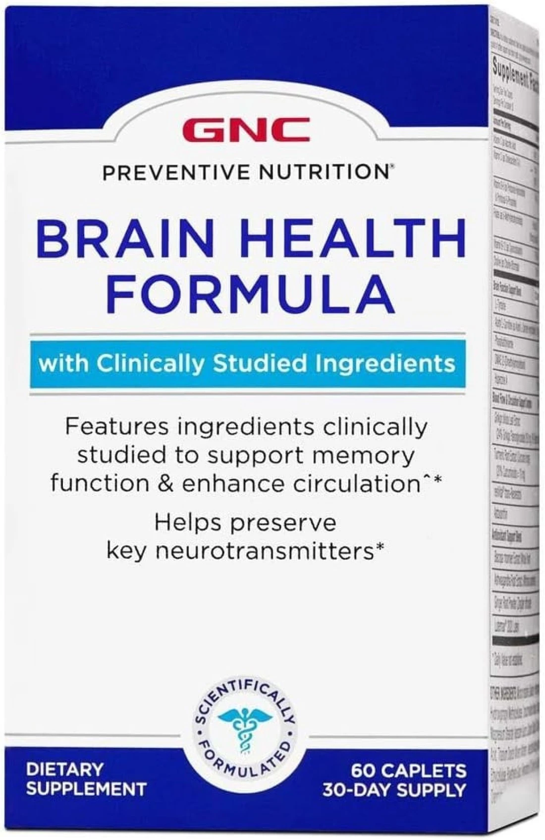 GNC Preventive Nutrition Brain Health Formula, 60 Caplets, Supports Memory Function and Enhances Circulation