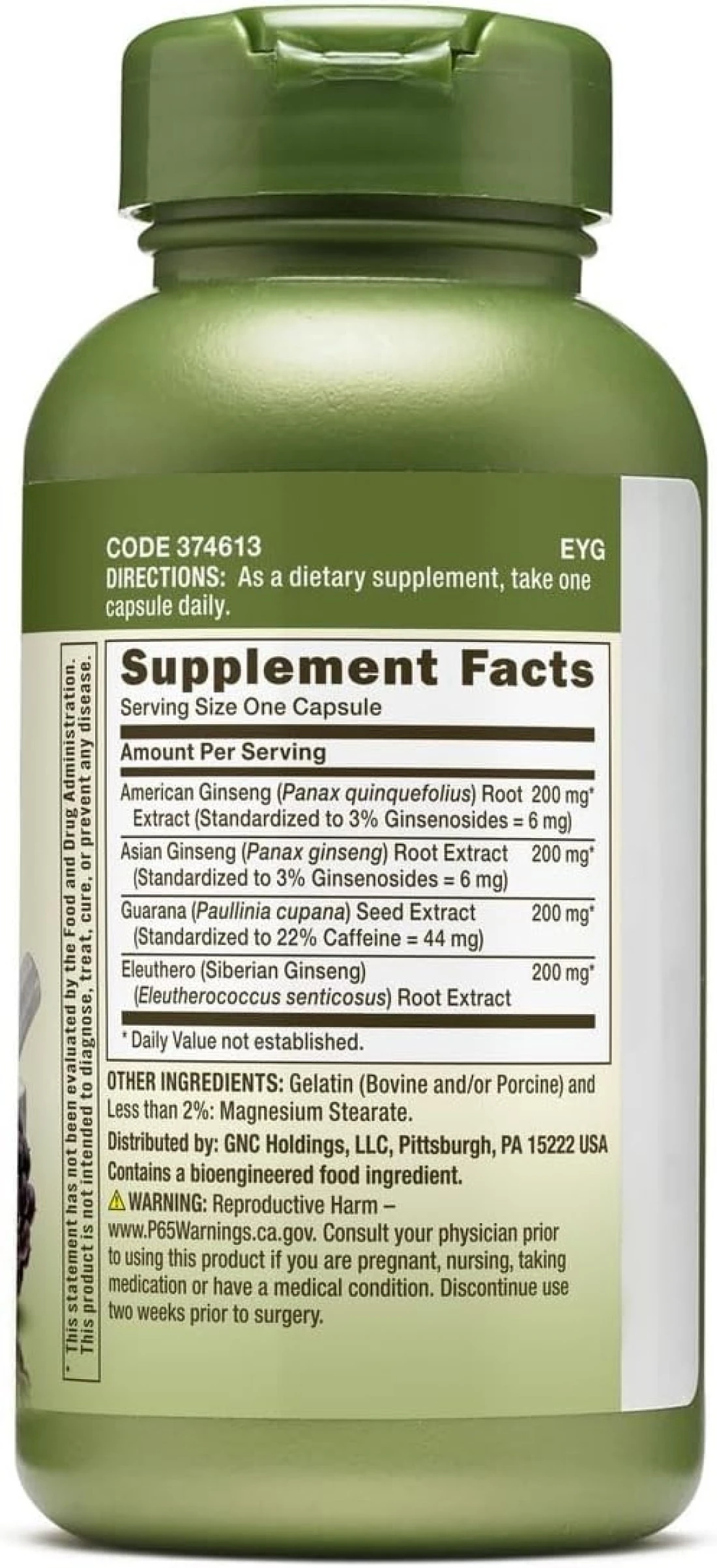 GNC Herbal Plus Triple Ginsa Rush, 100 Capsules, Supports Vitality and Energy