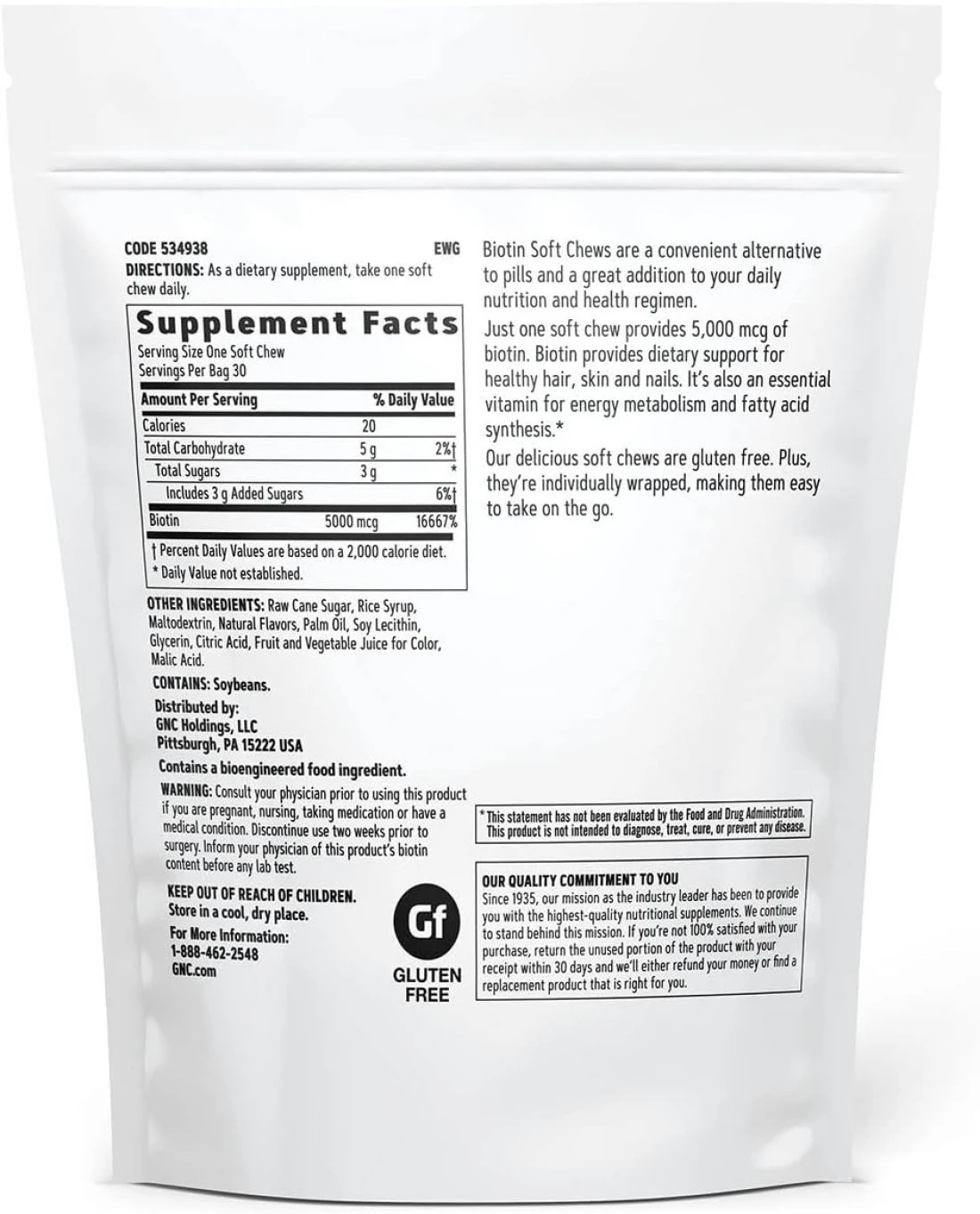 GNC Biotin 5000mcg - 30 Soft Chews