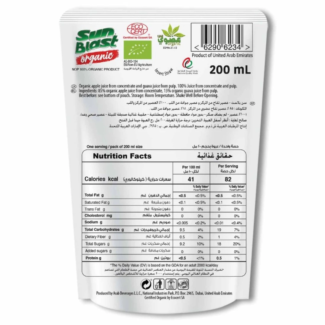 ingredients : 85% Organic Apple Juice From Concentrate, 15% Organic Guava From Pulp