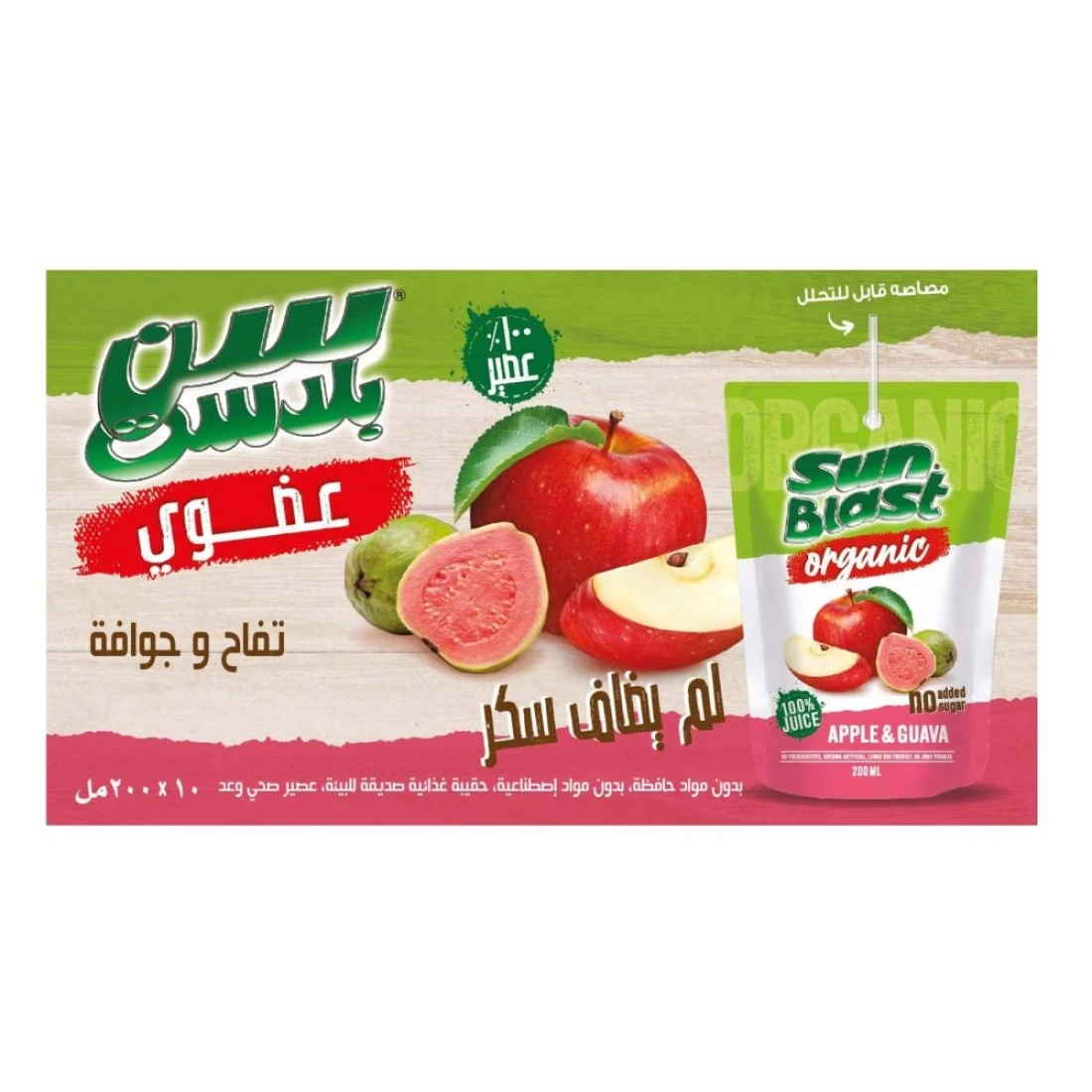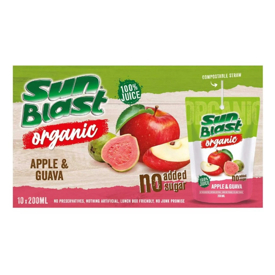 Sunblast No Added Sugar Organic Apple Guava Juice 200ml Pack of 10