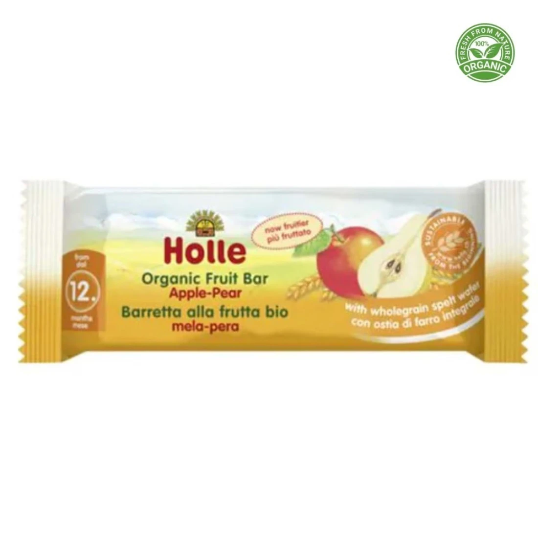 The Holle Organic Fruit Bar Apple and Banana is a nutritious and delicious snack for children. Made with organic fruits this bar is a convenient option for on-the-go snacking. It is free from added sugars and preservatives making it a healthier choice for kids. With a perfect blend of apple and banana flavours this fruit bar is sure to be a hit with children of all ages. It is also gluten-free and suitable for vegetarians.