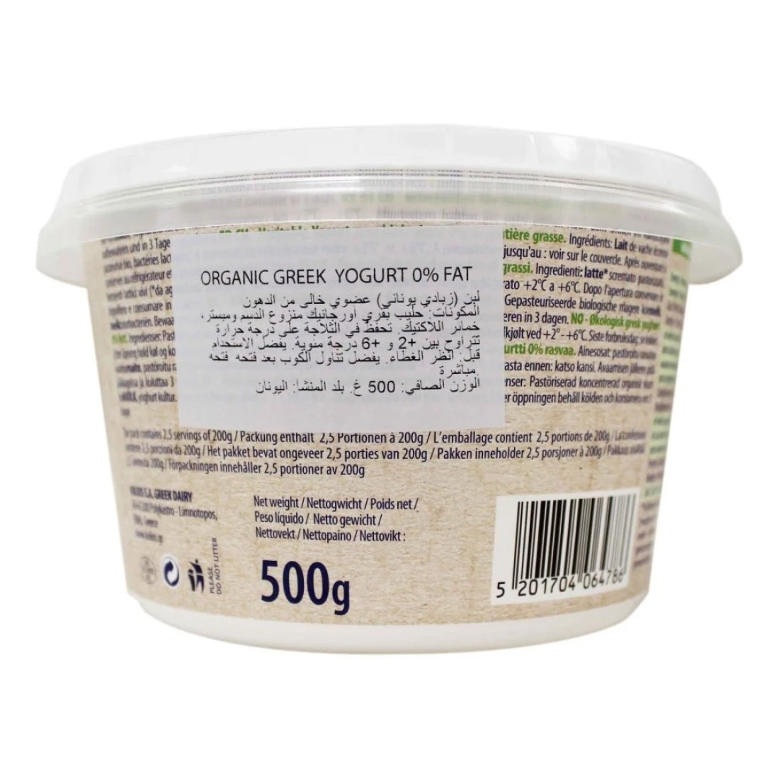 - Kolios Authentic Greek Yogurt with 0 percent fat made from skimmed cow's milk