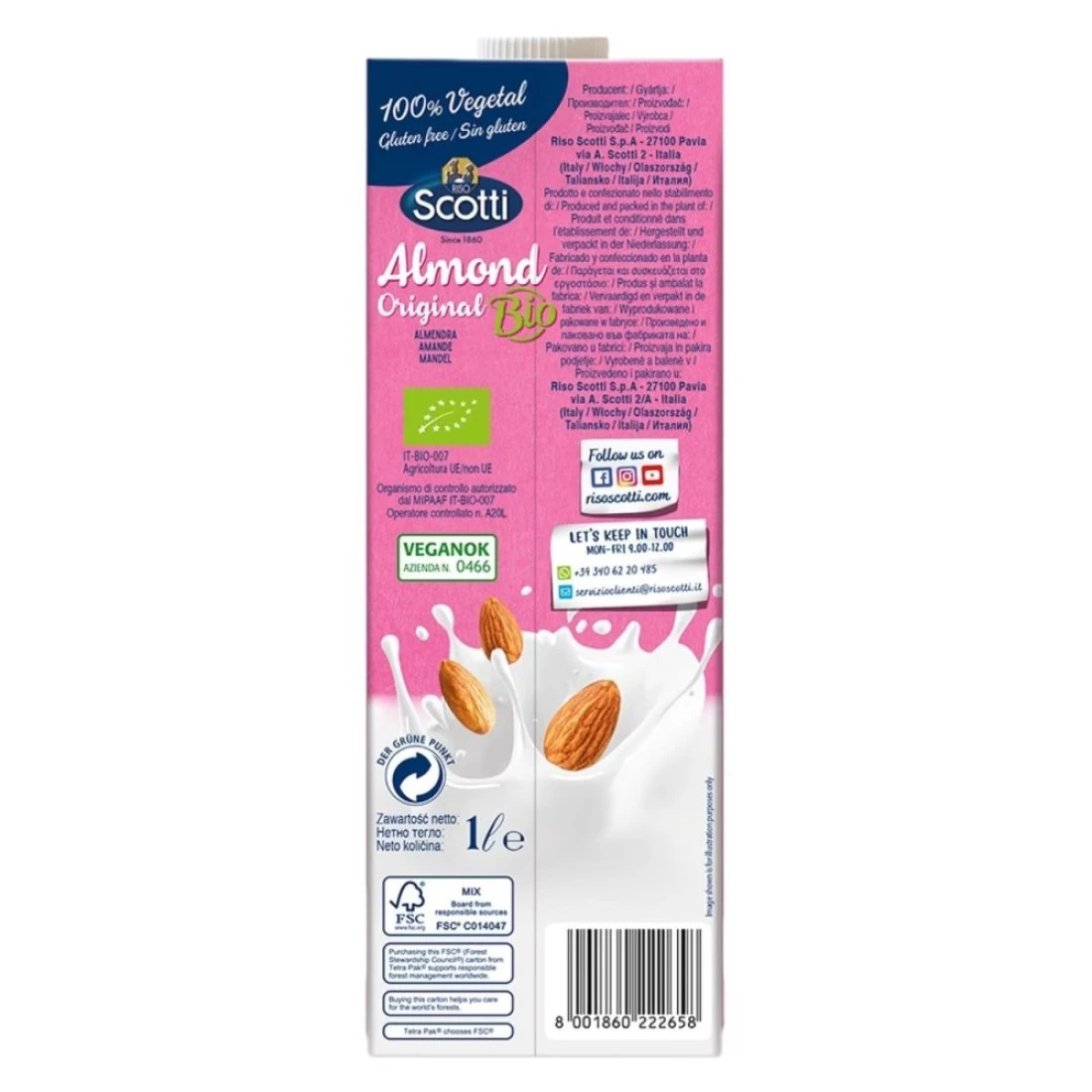 Scotti Bio Almond Original 1L is a delicious and nutritious almond milk made from organic almonds. It is a great alternative to dairy milk for those who are lactose intolerant or following a plant-based diet. This almond milk is creamy and smooth, with a subtle nutty flavour that is perfect for drinking on its own or adding to your favourite recipes. It is also a good source of calcium and vitamin E, making it a healthy choice for your daily needs. Enjoy the goodness of almonds in every sip with Scotti Bio Almond Original 1L.