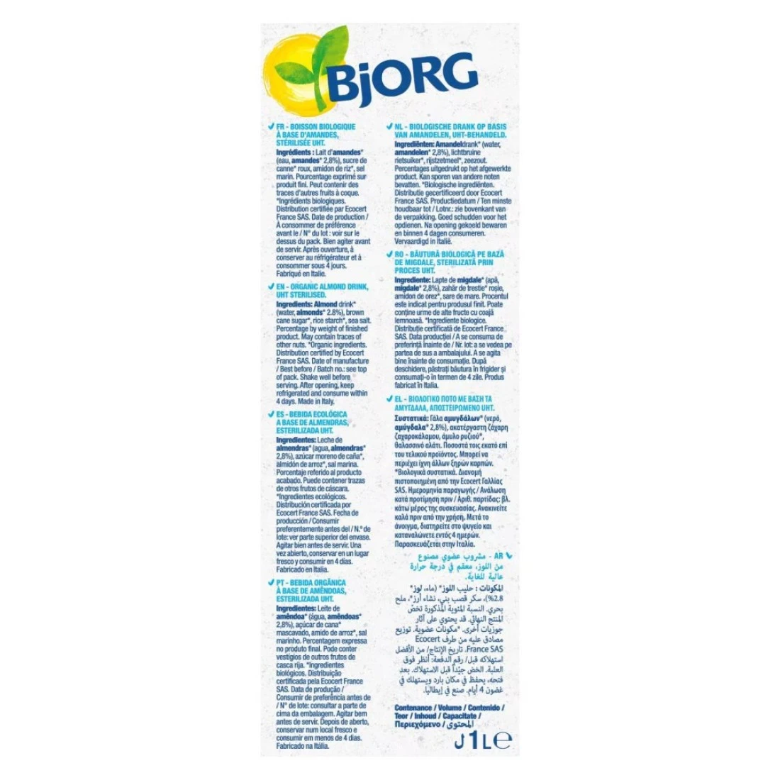 Bjorg Organic Almond Milk 1L