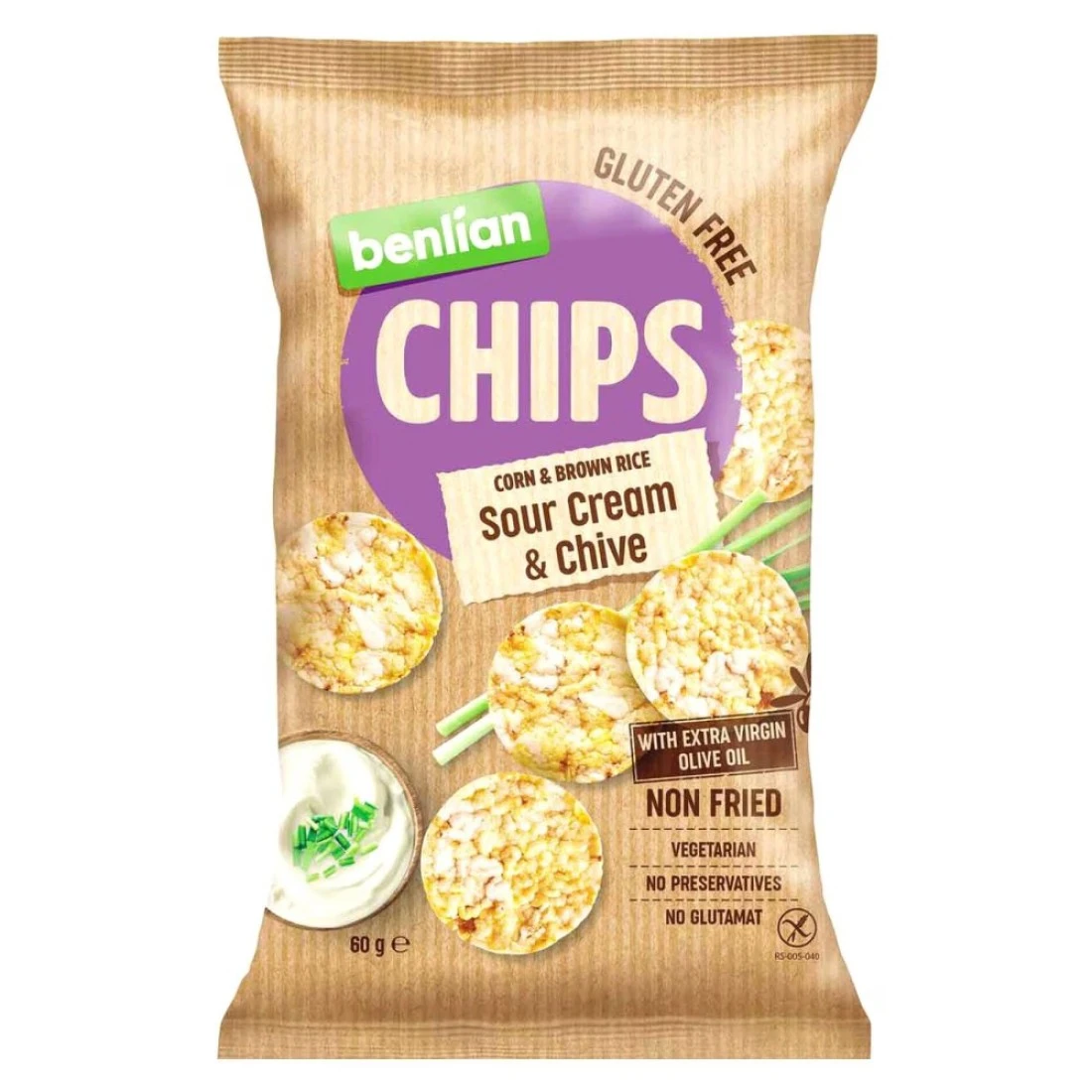 Benlian Gluten-Free Sour Cream Chive Flavoured Corn And Brown Rice Chips 60g