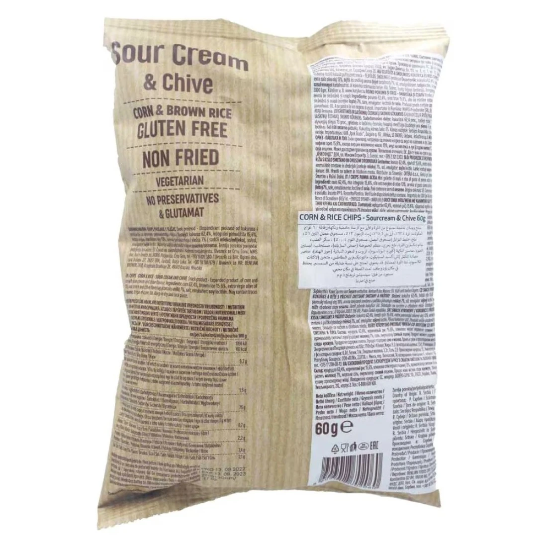 - Gluten-free thin low-fat brown rice and corn chips very crunchy with an extremely intense natural aroma expanded in olive oil no preservatives artificial colours or palm oil