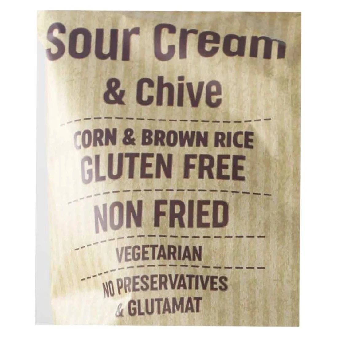 ingredients : Corn 62.4%, Brown Rice 15.6%, Extra Virgin Olive Oil 13%, Sour Cream And Chive Flavouring (Contains Milk) 7%, Salt, Emulsifier: Soy Lecithin.