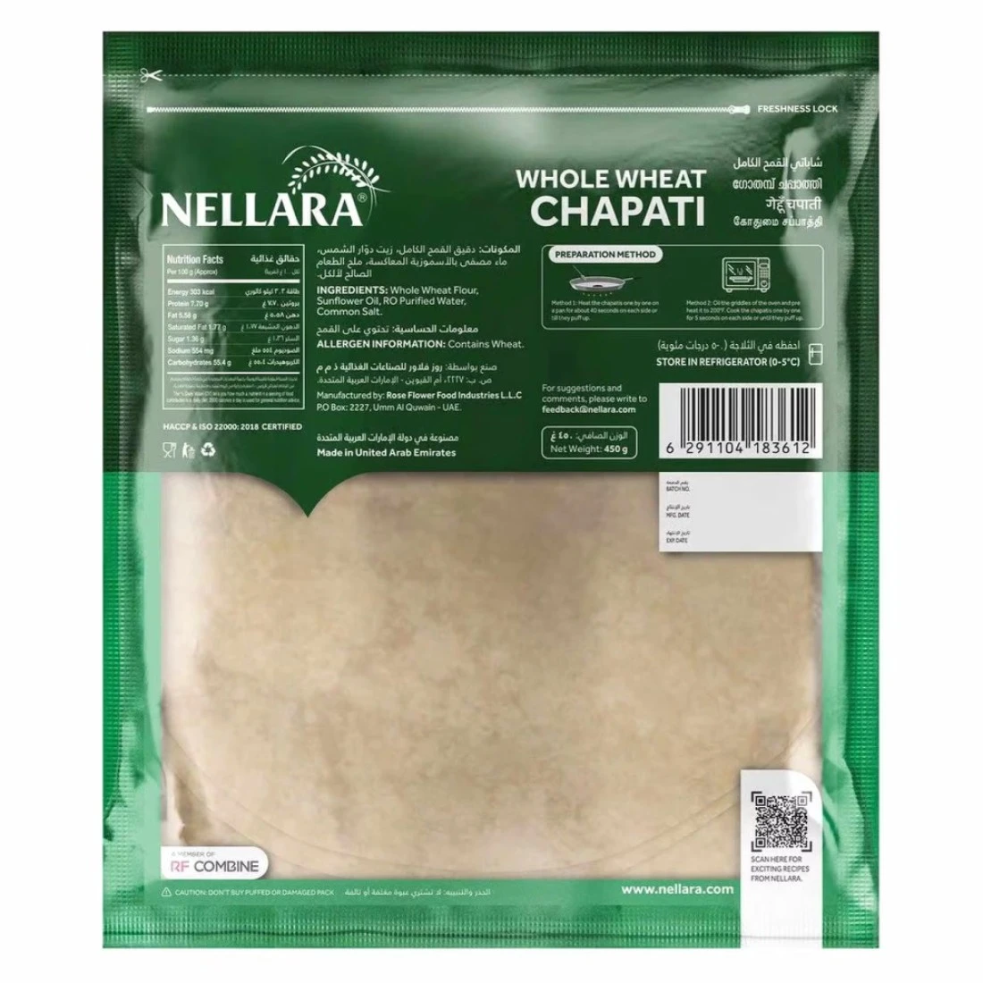 Nellara Half-Cooked Whole Wheat Chapati 450g