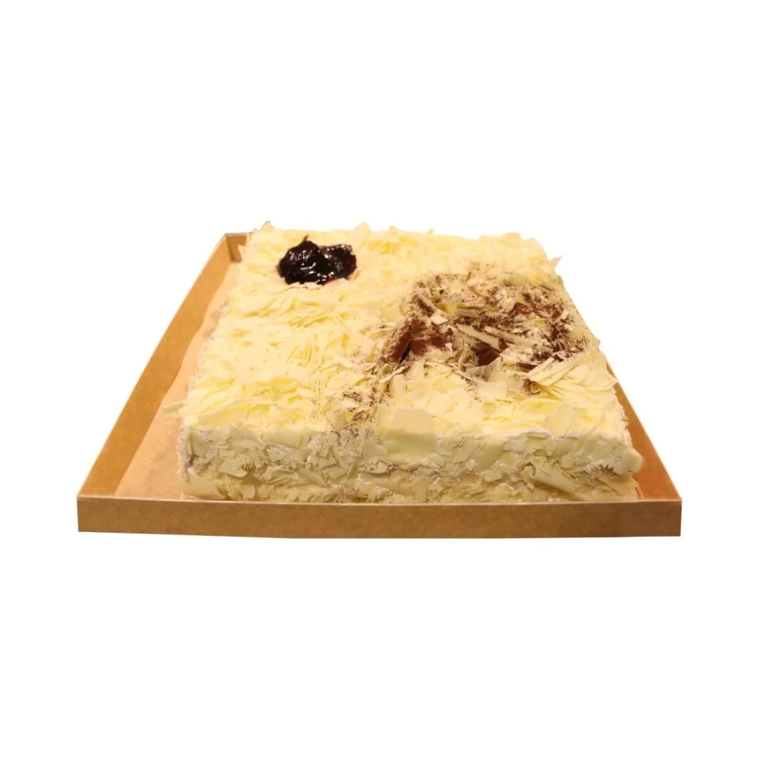 ingredients : Sponge Mix, Eggs, Water, Sugar,Vegetable Fat, Cocoa Butter, Cherry, White Chocolate,Salt, Cacao, Vanilla, Milk Powder,