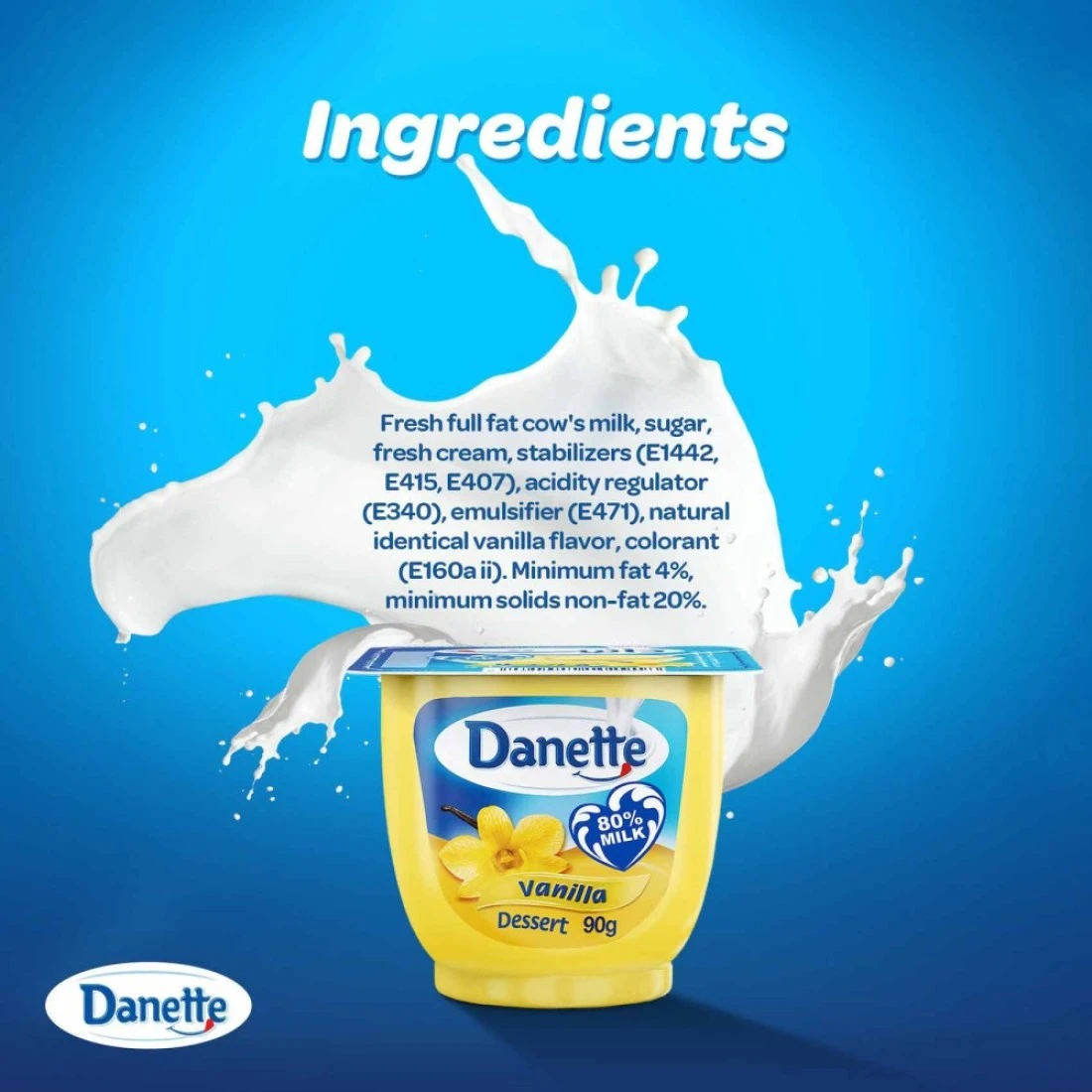 Made from 80 percent fresh milk Danette is the perfect way to treat yourself without the guilt. Whether you prefer it as a snack or as a dessert Danette is a delicious and healthy treat that will satisfy the whole family. Say yes a little more with Danette.