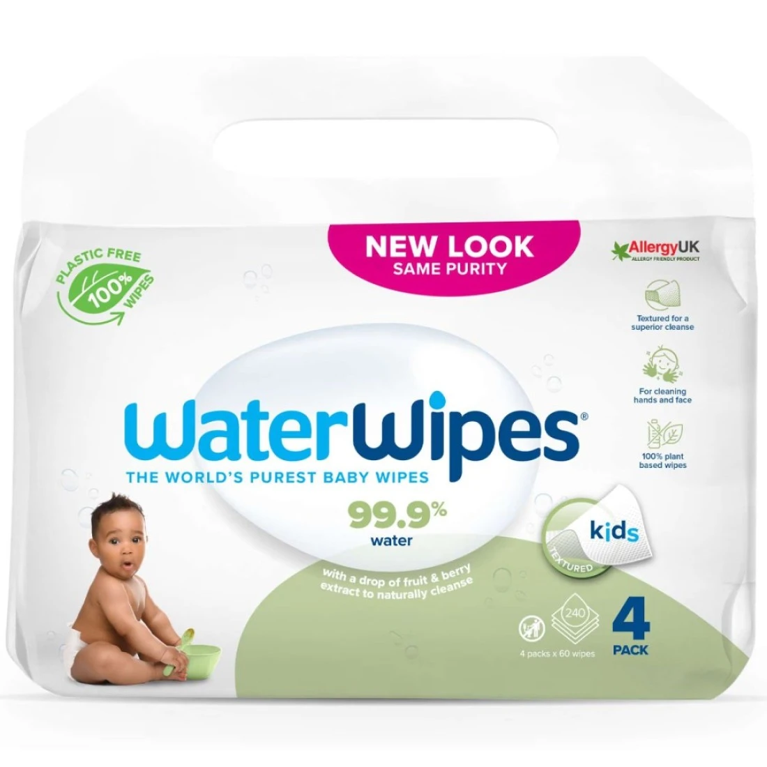 WaterWipes Plastic Free Textured Clean Toddler & Baby Wipes 240 Wet Wipes (4 Packs)