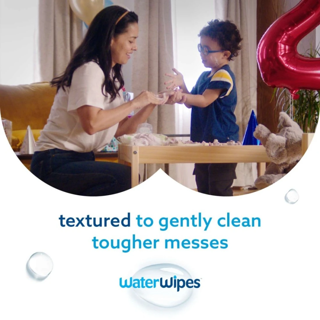 - TEXTURED FOR TOUGHER MESSES: As babies grow, so do the messes. The soft, textured surface of WaterWipes provides added cleaning power to tackle messes on hands, faces and bottoms, making them perfect for growing babies and toddlers.