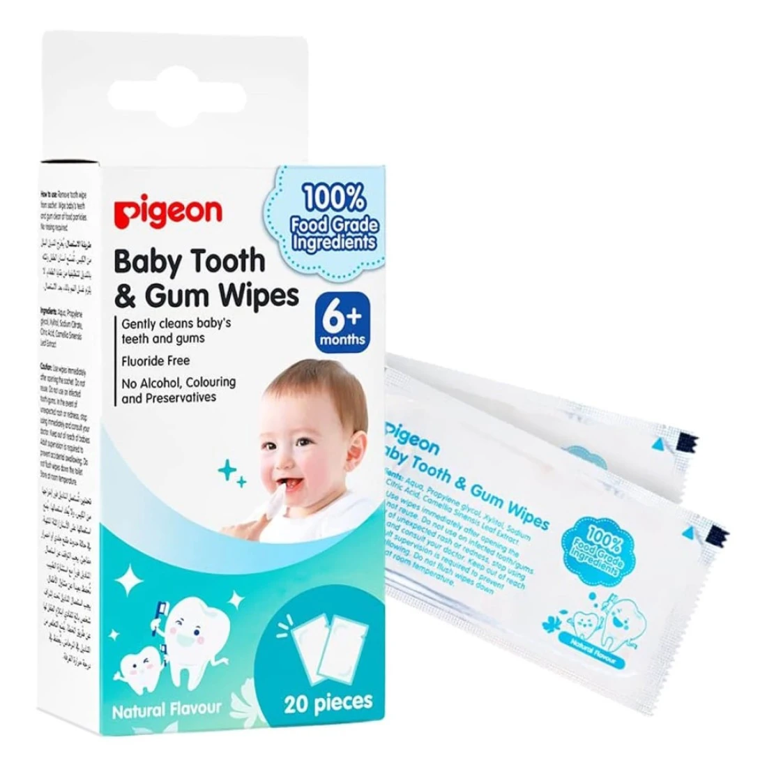 Pigeon Natural Flavor Baby Tooth And Gum Wipes 78290 White Pack of 20