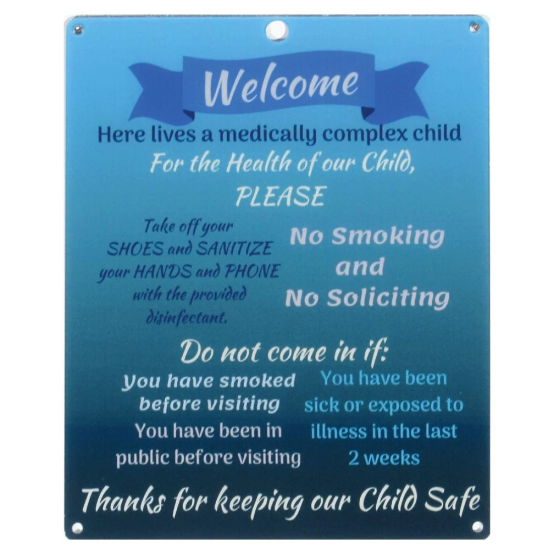 Rolling Buddies Medically Fragile Child Plastic Sign - Blue
