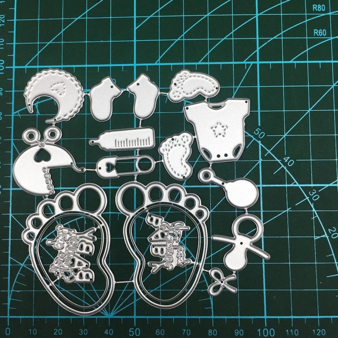 Baby Shower Metal Cutting Dies Baby Footprints Babby Boy Girl Bottle Pacifier Bib Die Cuts for DIY Scrapbooking Photo Album Paper Crafting Card Making Decorative