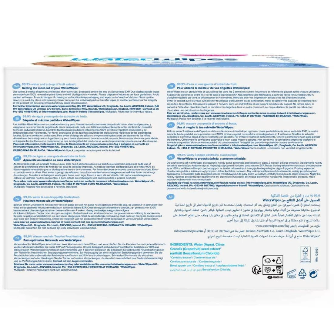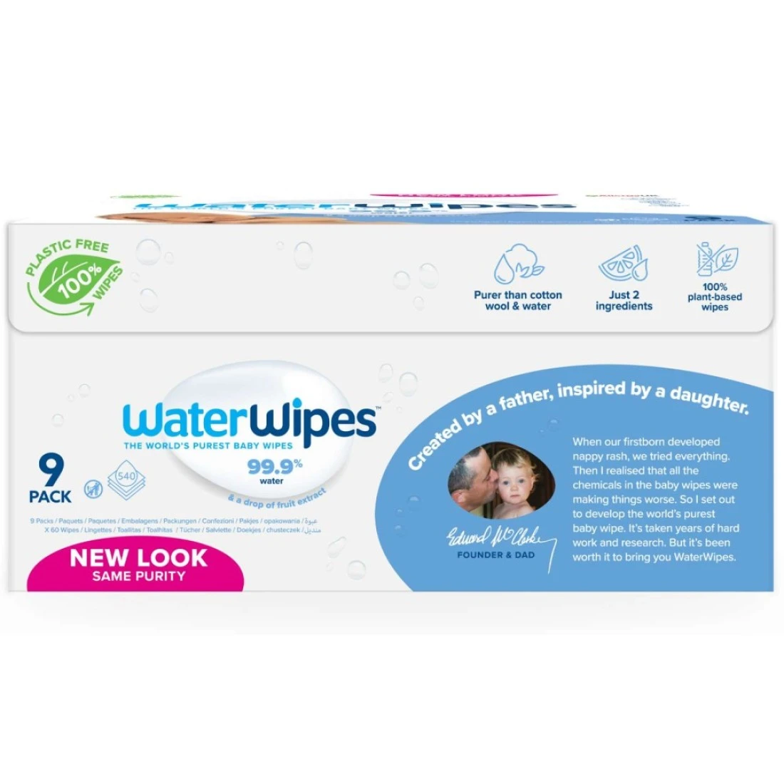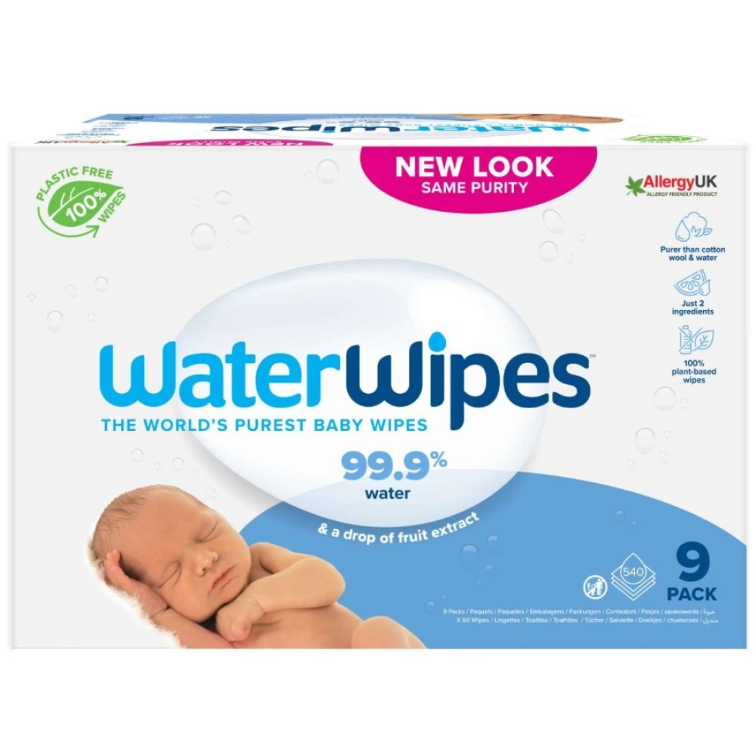 Water Wipes Purest Baby Wipes White 60 Wipes Pack of 9