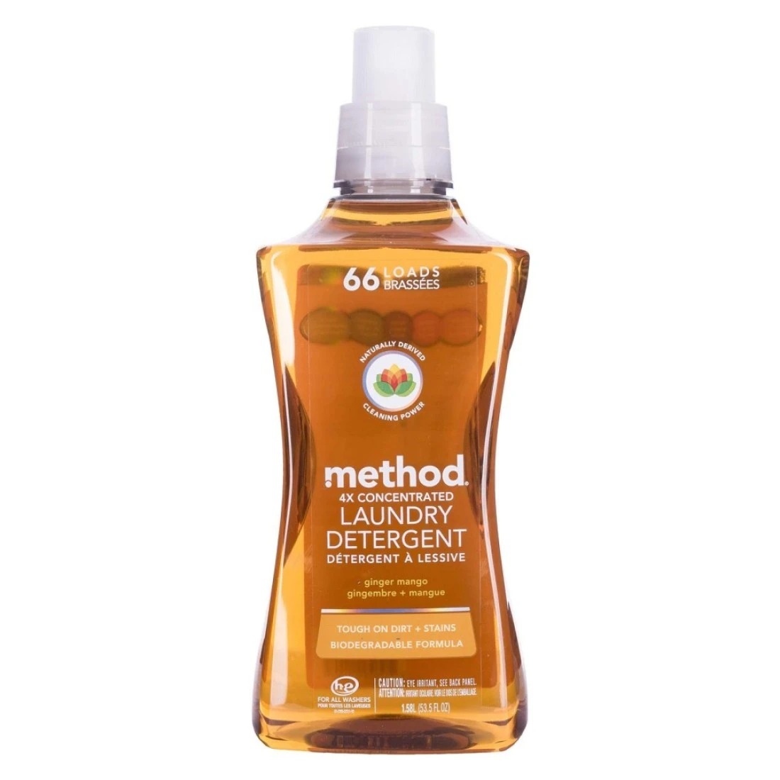 MethodLiquid Laundry Detergent Ginger Mango 66 Loads Per Bottle Hypoallergenic Biodegradable Formula PlantBased Stain Remover 535 Fl Oz Pack of 1