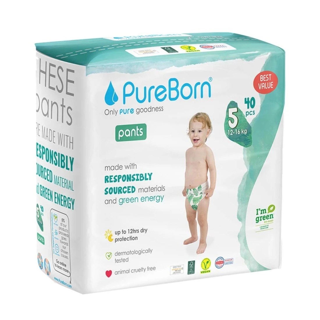 PureBorn Pull-Up Training Pants are designed for toddlers transitioning from diapers to underwear, offering a comfortable and reliable solution for potty training. Made from soft, breathable materials, these training pants feature a stretchy waistband for easy on and off, allowing little ones to gain independence during the potty training process. They are also equipped with absorbent layers to provide protection against leaks while remaining discreet and non-restrictive. With fun designs and a focus on sustainability, PureBorn Pull-Up Training Pants are an eco-friendly choice for parents looking to support their child's development while being kind to the planet.