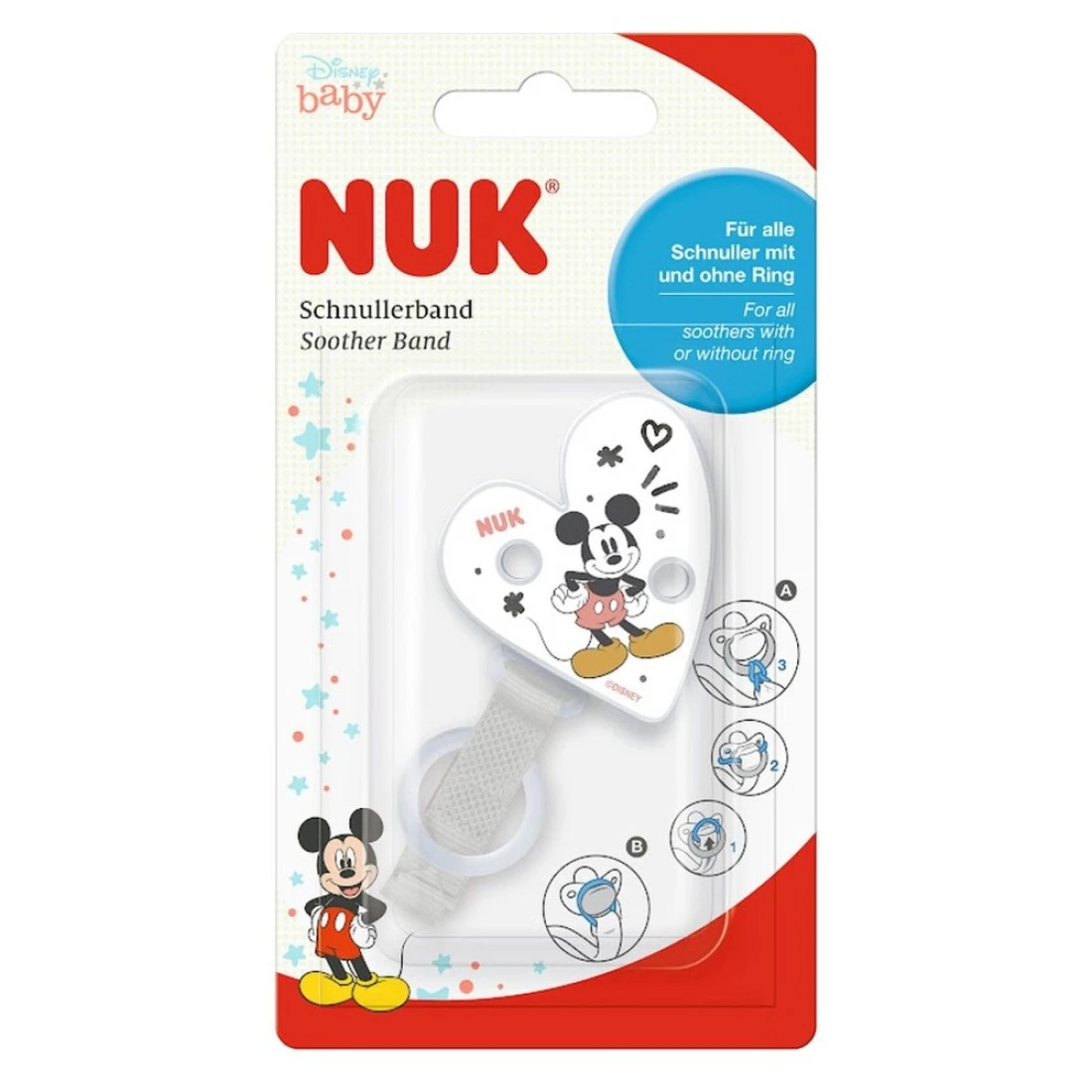 - Nuk Disney Mickey Mouse Soother Band, for all soothers with or without a ring