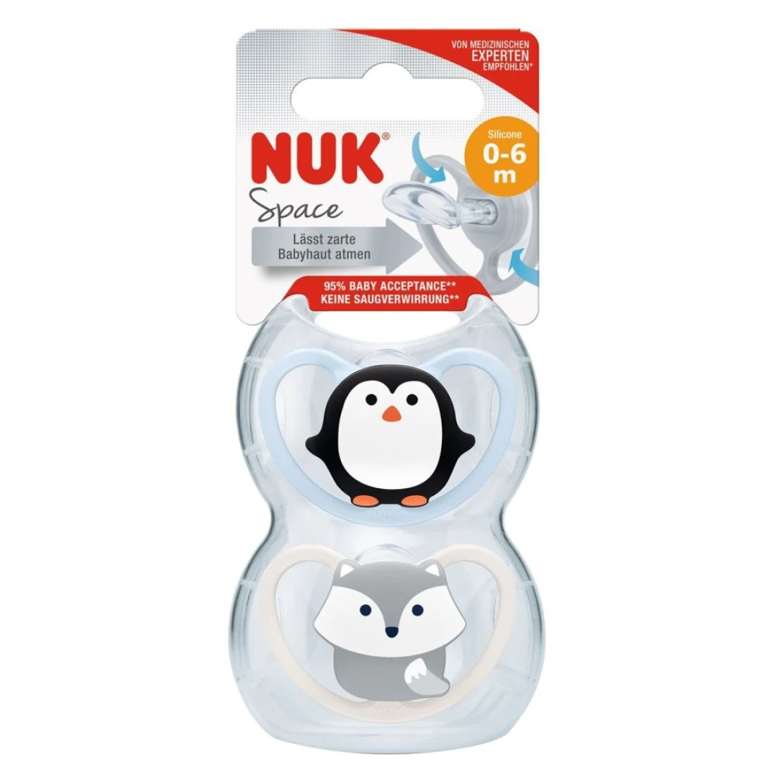 - Orthodontic, silicone soothers for babies aged 0-6 months