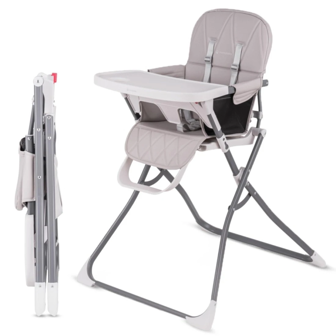 PRACTICAL & FOLDABLE: Designed for convenience. Easy storage by folding with one click. Its foldable design allows for compact storage making it perfect for on-the-go families. The slim high chair comes already assembled, ensuring a hassle-free setup where you and your little one go. Our compact high chair can be folded away in seconds with the one-hand, one-second fold., SAFE: Your baby’s safety is our top priority. The 5-point safety belt adds an extra layer of security, keeping your little one secured and comfortable during mealtime and play. Our baby high chair is equipped with a strong crotch protection and a stable pyramidal base, providing exceptional balance and stability. Built with quality materials, our high chair promises lasting stability for your peace of mind. The Nunzybaby Slim high chair is also ASTM F404-21 certified and BPA-FREE., EASY TO CLEAN: Simplify your cleaning routine with our high chair. The tray design allows for easy cleanup after messy meals, while the waterproof and machine-washable seat cover ensures effortless maintenance. Additionally, the smooth surfaces of our high chair are easy to wipe down, making tidying up a quick and stress-free task., CONVERTS INTO A TODDLER CHAIR: Our high chair also serves as a toddler high chair for dining at the table. Once the baby is securely strapped into the chair using the 5-point safety belt and crotch protection, you can remove the tray and position the high chair at the dining table, helping the baby develop good eating habits. The Nunzybaby Slim is designed to grow with your baby., AFTER-SALES SERVICE: We know how busy you must be as new parents and are committed to helping you post-purchase. Reach out to us at anytime for prompt assistance and guidance. Your satisfaction and baby’s safety is our priority.