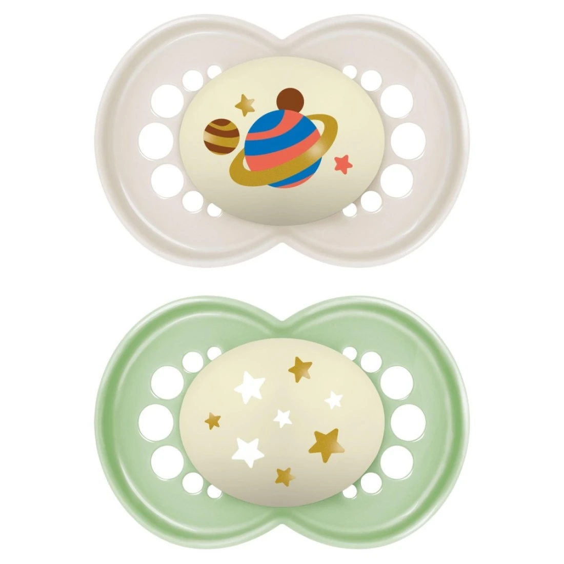 MAM Night Pacifiers (2 Count), MAM Pacifiers 6+ Months, Best Pacifier for Breastfed Babies, Glow in The Dark Pacifier, Baby Unisex Pacifier, 6-16- 2 Count (Pack of 1)