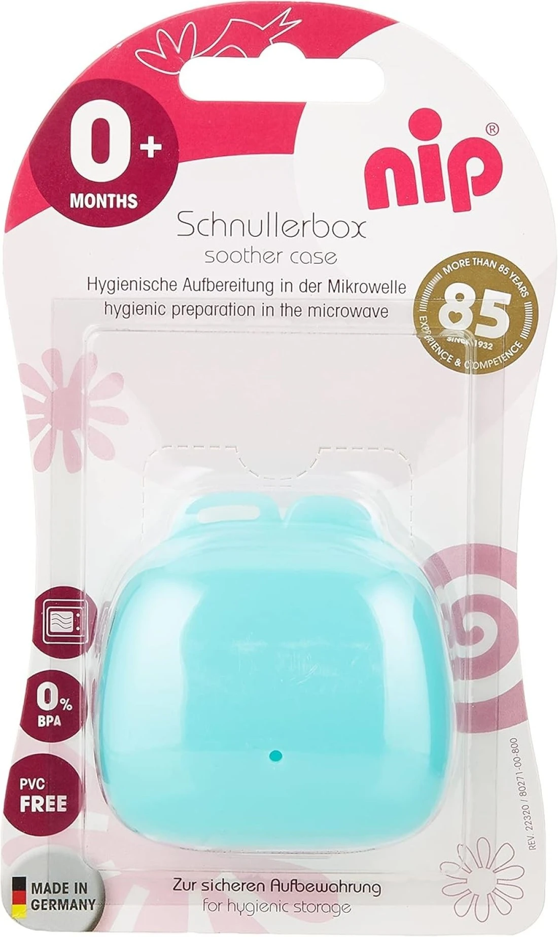 Nip 2-In-1 Pacifier/Soother Box Sterilizer And Hygienic Soother Storage Case, Microwavable, Clean Soothers In 60 Seconds, Made In Germany, Fits Most Soothers - Blue
