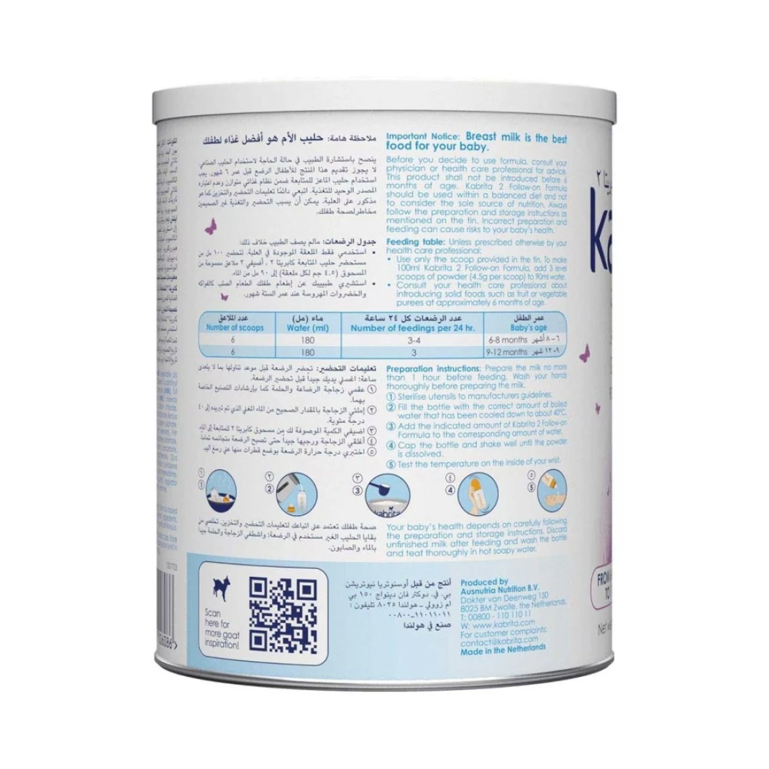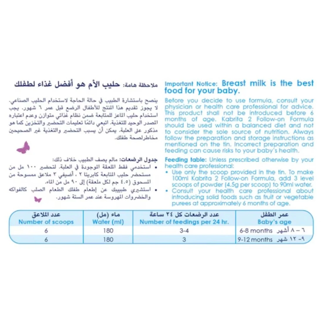 - Kabrita 2 Follow-on Milk cannot be used in the first 6 months of age as a replacement for breastfeeding