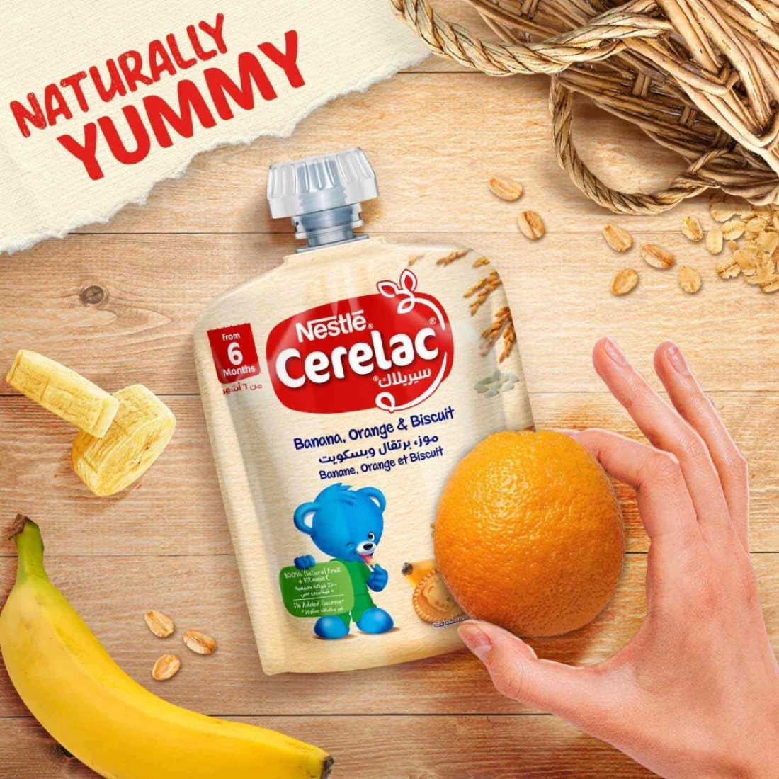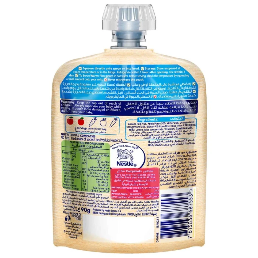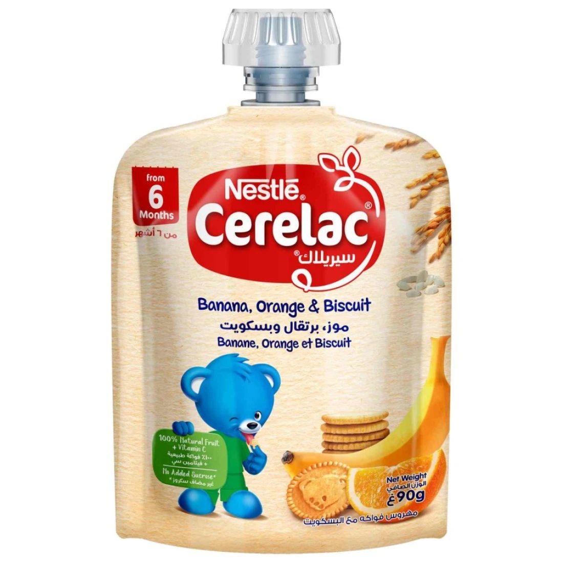 Nestle Cerelac Fruits Puree Pouch, Banana, Orange, Biscuit, from 6 Months, 90g