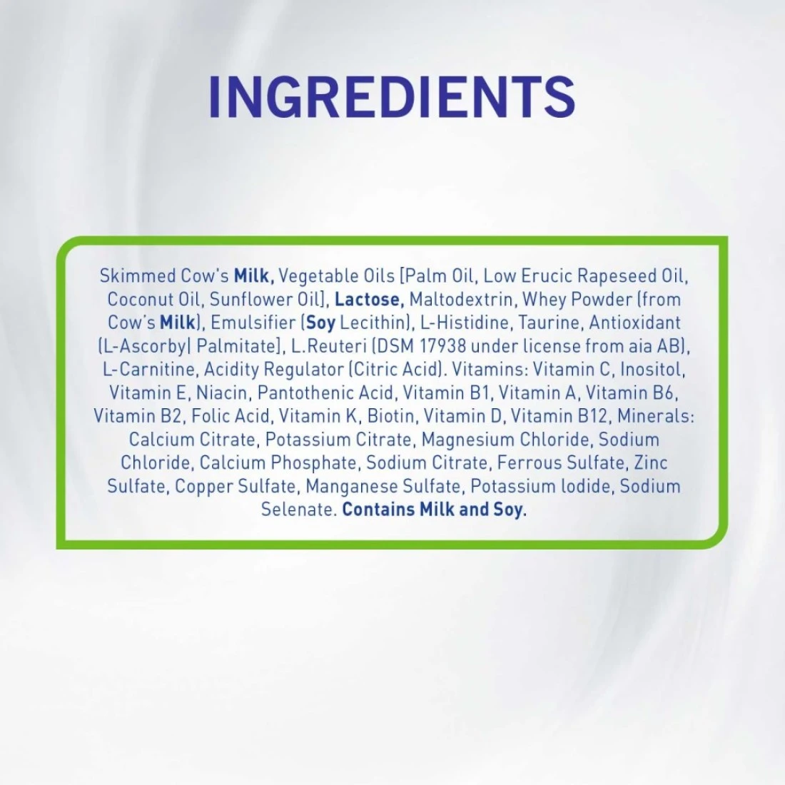 ingredients : Skimmed cow's milk, Lactose, Whey protein concentrate, palm olein