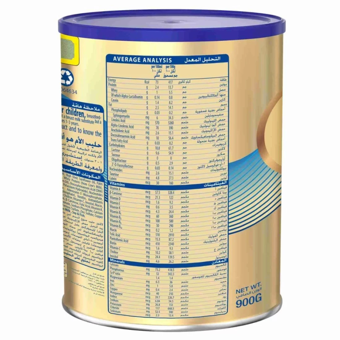 S-26 Gold Progress Stage 3 Growing Up Milk Formula 900g is a specially formulated milk formula for toddlers aged 1-3 years. It is designed to meet their nutritional needs during this important stage of growth and development. This milk formula provides essential nutrients such as vitamins, minerals, and DHA which are important for brain development, immune support, and overall health. It is also enriched with prebiotics to support a healthy digestive system. The formula is easy to digest and has a delicious taste that toddlers love. It can be used as a supplement to a balanced diet to ensure that toddlers are getting all the nutrients they need to thrive.