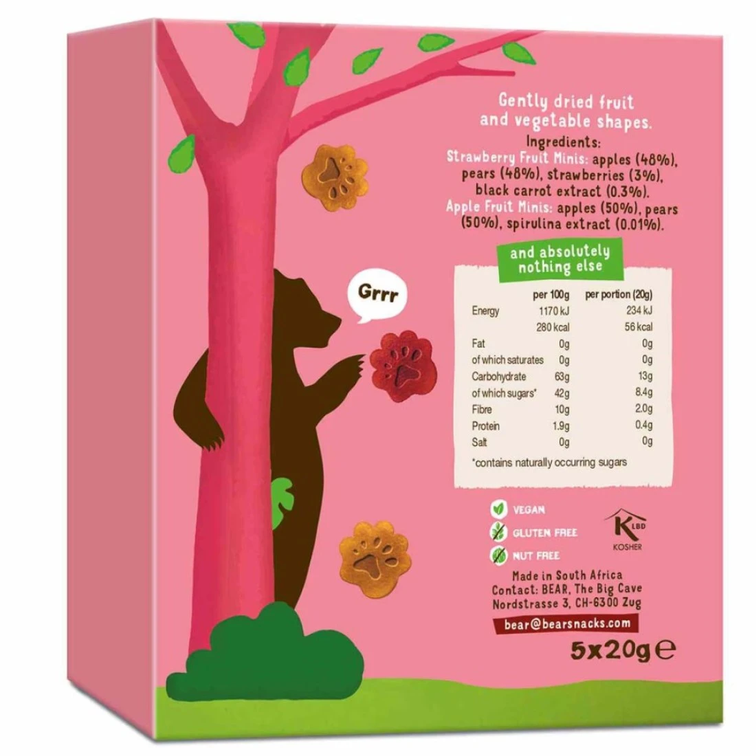 Bear Dino Paws Strawberry And Apple Pure Fruit Snacks 20g Pack of 5