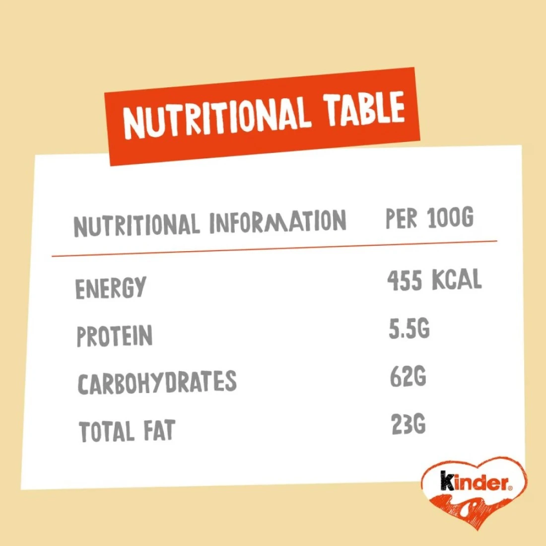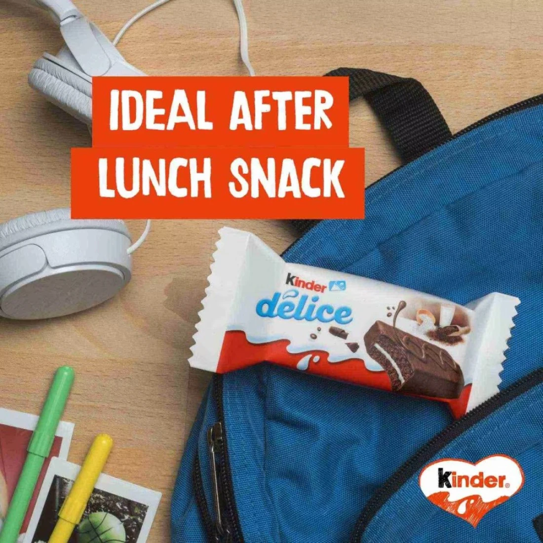 - Kinder Delice is made from a unique fulfilling recipe with no artificial colour or preservatives