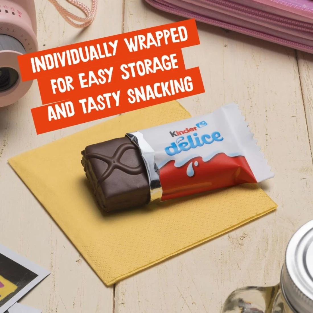 - Make the little moments count with the Kinder Delice bar! Kinder Delice is a delicious candy bar sure to indulge your chocolaty craving