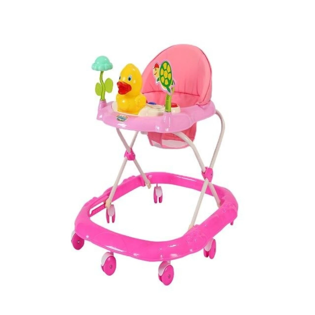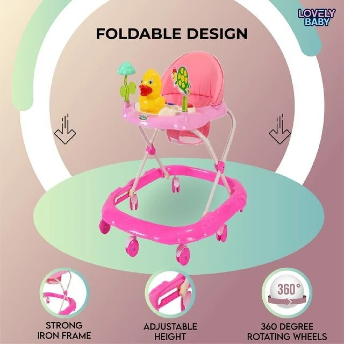 Lovely Baby Foldable Kids Walker LB 852 with Adjustable Height, Music & Toys, Rotating Wheels, Foldable Safe Support Activity Walker for Toddlers, Small Infant Boy Girl 6-15 M - Pink