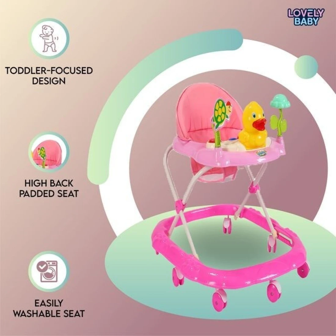 TODDLER-FOCUSED DESIGN: Acknowledging the importance of comfort for toddlers, the soft padded seat, play toys and overall design of the Lovely Baby Walker prioritizes the well-being of your child.