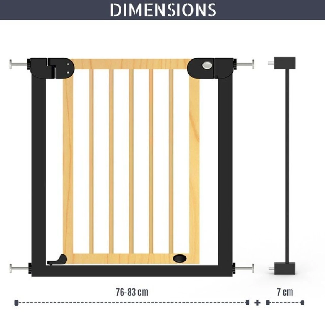 • Baby Safety Gate is extendable and covers areas From 76 to 83cm.