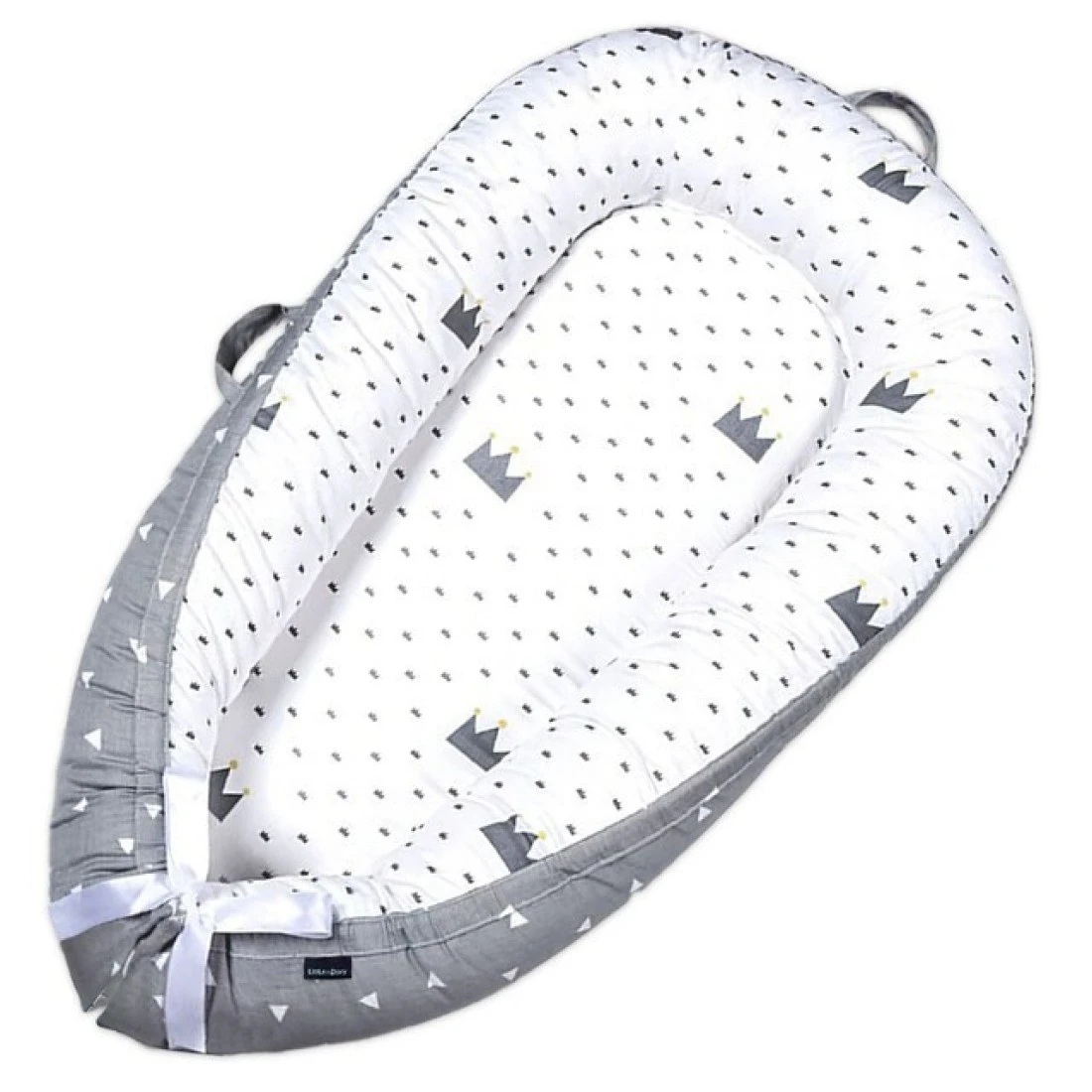 Little Story Soft Breathable Fiberfill Newborn Lounger Bed - Royal Grey