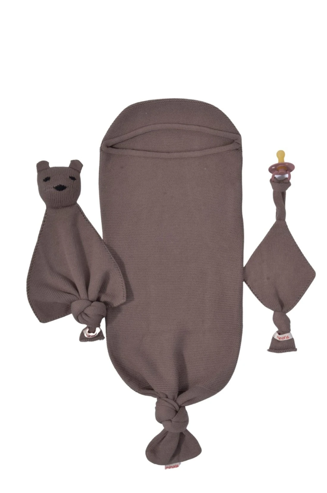 Newborn Essential Baby Swaddle Blanket Set, 1 Piece Set (1 Pacifier Holder, 1 Cocoon Swaddle Sleep Sack, 1 Teddy Bear), 0-8 Months Baby -Coffee