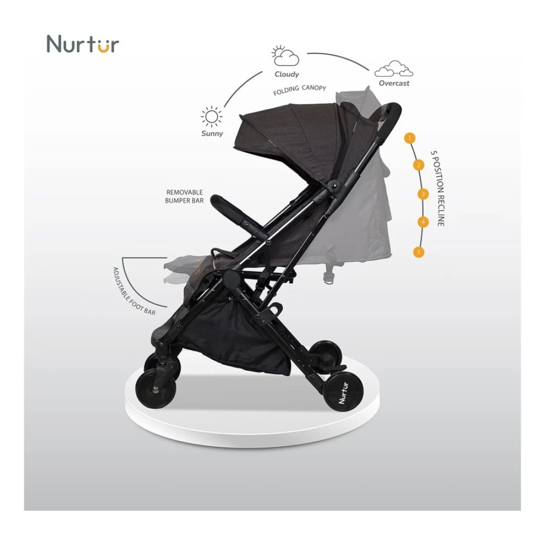 - Adjustable canopy for sun protection