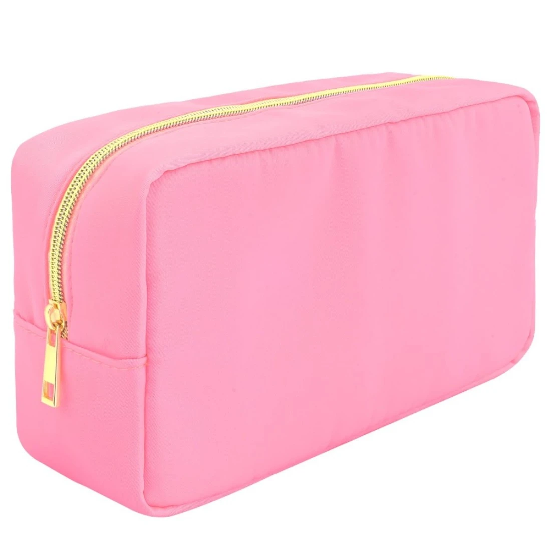 Travel Makeup Bag Advantages & Disadvantages:Our nylon makeup pouch for women larger than other, so please know the size before you buy, thank you very much, High Quality:The large cosmetic bag is designed with nylon twill waterproof and has an internal sponge layer to prevent the bag from getting wet. The nylon zipper pocket is not only waterproof, but also durable and not easy to fade, and the metal zipper can be opened and closed smoothly, Aesthetic DIY:This nylon zipper pouch is the same bag as the chenille alphabet bag. You can iron and sew on any letters you want or other cute patches on the bag, like "STUFF" "HAIR" "FACE", "SKIN", etc. or name, Large Cosmetic Bag Size:This pink zipper bag is 9.84" x 5.51" x 3.15" (25 x 14 x 8 cm). It is the perfect size for storing cosmetics and accessories, and it is light and soft. You can put it in your luggage packing, bag. It will bring a lot of convenience for your travel, Multifunctional Bag:This toiletry bag is also suitable for storing care products, toiletries, etc. In addition, you can put some stationery for your children, or put cutlery and picnic cloths when your children have a picnic, Fashion Gift:This cute makeup bag is perfect for girls and women who love beauty, it is also a fashion gift for Daughter, mom,sister,lover, girlfriends, etc