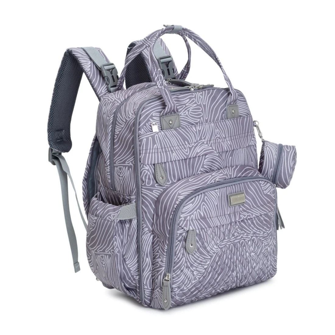 BabbleRoo Diaper Bag Backpack Baby Essentials Travel Essentials Baby Bag with Changing Pad Stroller Straps Pacifier Case Unisex Gray Swirls