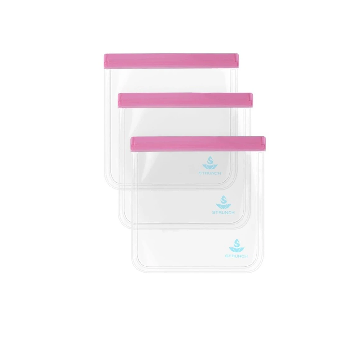 Staunch- 3 Pc, Toiletry Bags, Baby Pink, Transparent Toiletry, 1 Quart Ziplock Bags
