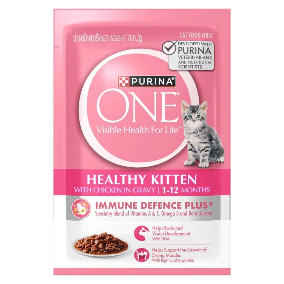 Nestle Purina One Healthy Kitten Wet Food With Chicken In Gravy is a specially formulated cat food designed to meet the nutritional needs of growing kittens. It is made with real chicken and is packed in a delicious gravy that adds extra flavour and moisture to your kitten's meal. This 85g pack of 12 provides a convenient and portioned serving size for your kitten. It is a complete and balanced diet that supports your kitten's overall health and development. With high-quality ingredients and a delicious taste Nestle Purina One Healthy Kitten Wet Food is sure to keep your kitten happy and healthy.